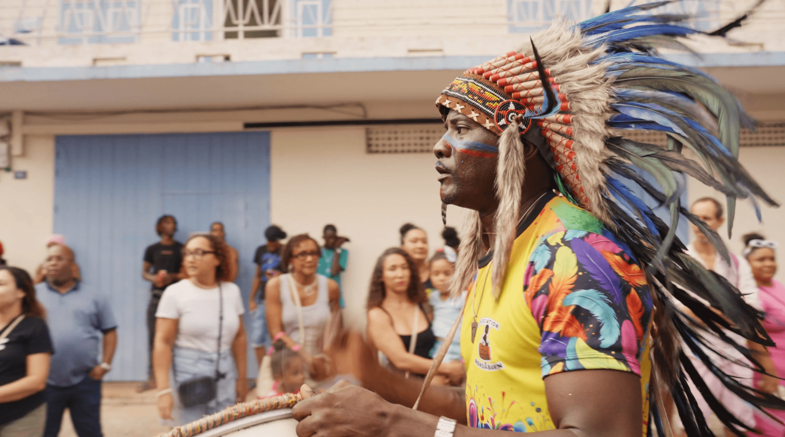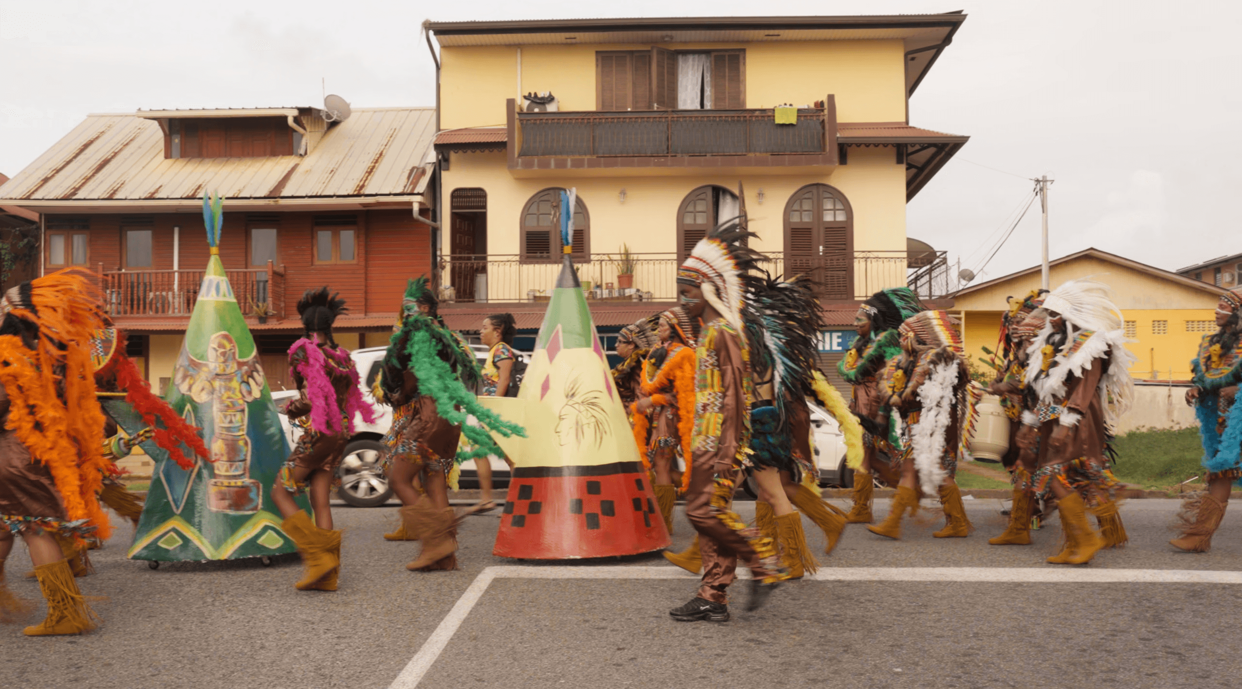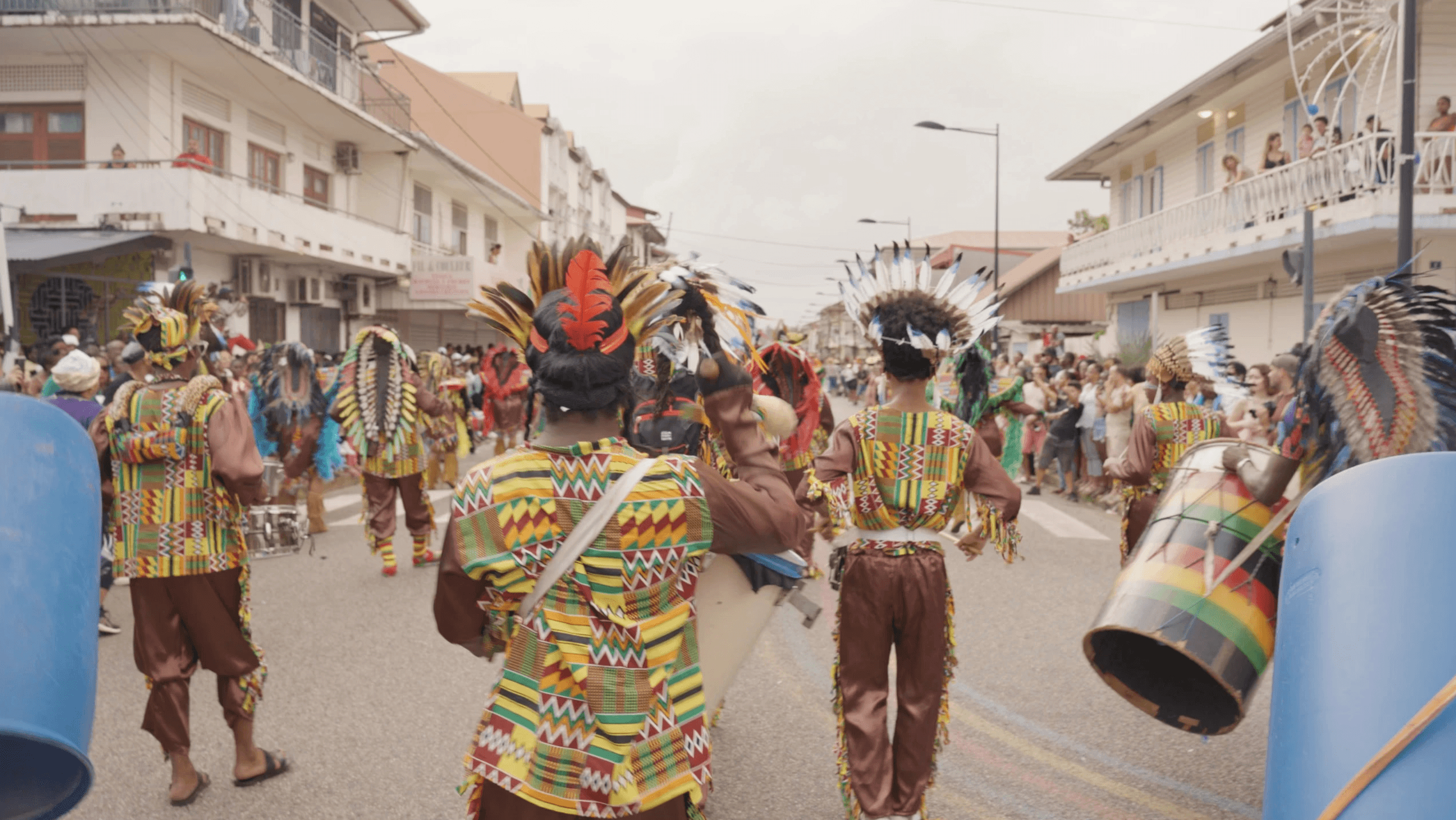 A l’approche du mois de février les caisses claires accompagnées des bass drums remplace petit à petit le brouahaha des voitures dans les rues de Cayenne. Les danseuses se parent des plus belles plumes et se meuvent au rythmes des lambi et des chacha devant les yeux émerveillés des Cayennaises et Cayennais. Immersion dans le carnaval de Cayenne avec le groupe Renno’bann.